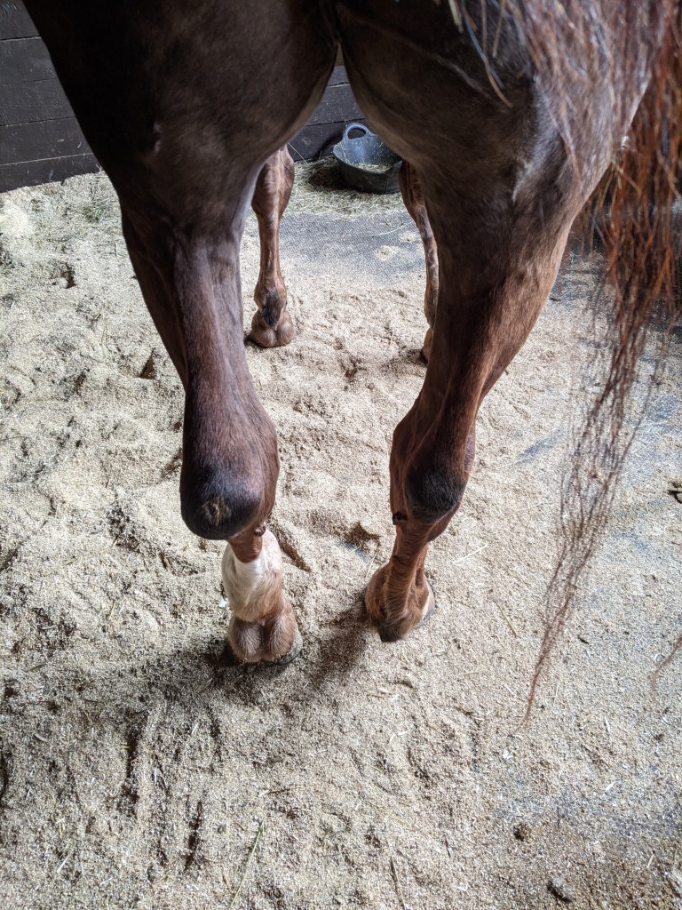 June didn’t end quite as planned, Eva came in very lame and with a swollen hock (which happened to be on my birthday) I had the day off so I was up quickly and managed to get the vet out with a few hours as she really wasn’t keen to put weight on it! She certainly was feeling sorry for herself and she let vet pick up her leg an inspect with out any issues. The diagnosis was cellulitis from a small cut in the hock. She had a shot of antibiotics and I was given pain killers and anti inflammatory to feed her with box rest.